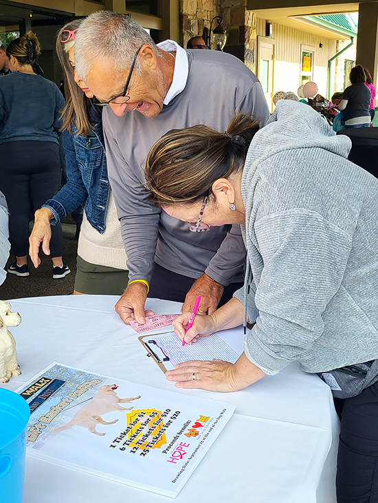 Signing up for raffle tickets.