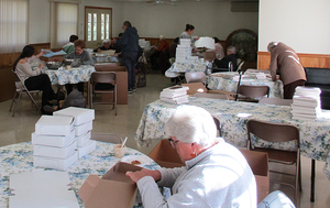 For those who could not do outside chores, volunteers made 1000 boxes for the baked goods that will be sold over the holidays while others made box inserts for the boxes, cleaned and separated walnuts, pecans and raisins for the baking needs.