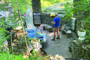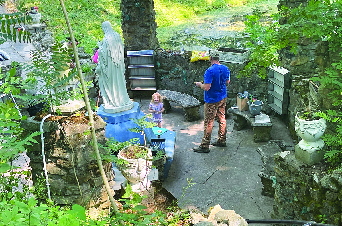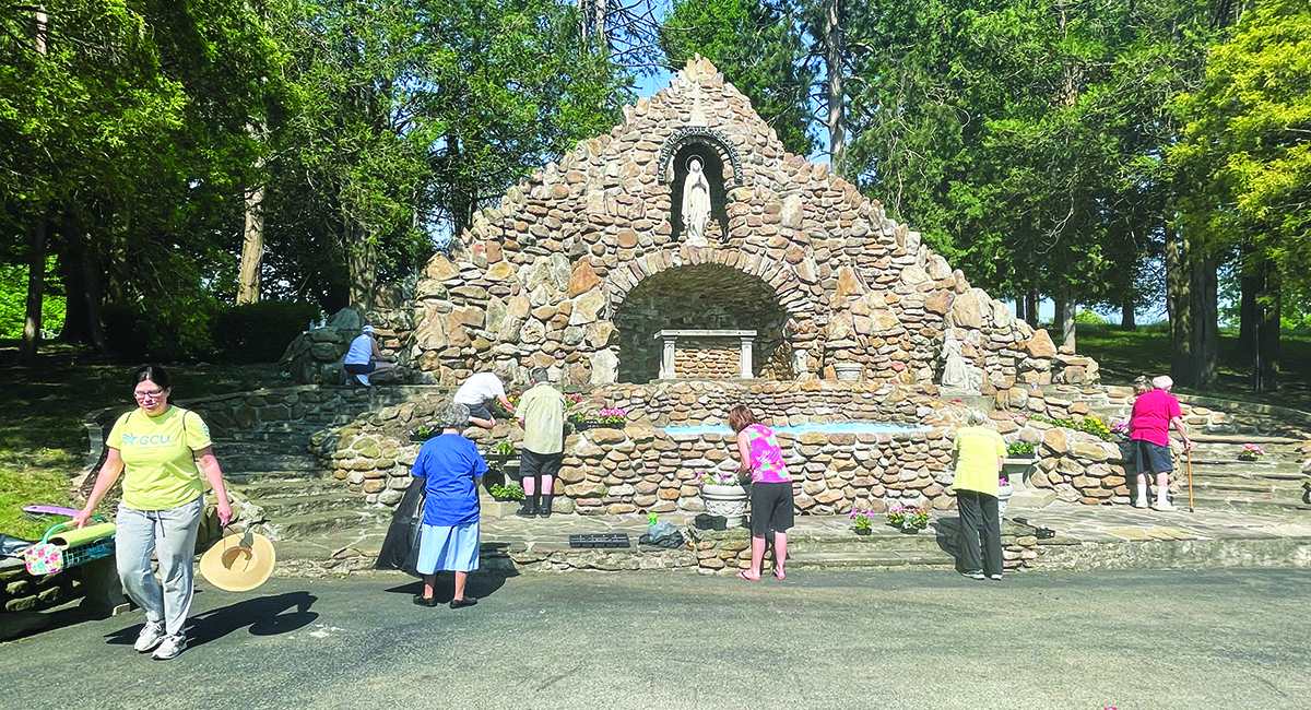 The day was under the direction of Sr. Joanne Lickvar. There was plenty to accomplish, with volunteers sticking to outside chores this year. Many helped clean up debris that had accumulated over the winter. Volunteers also planted flowers in the numerous flower beds spread across the sprawling property. There were trees to prune and additional areas to prepare in hopes of pilgrims returning this year to attend the annual Pilgrimage on Labor Day weekend.