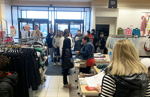 GCU member Laura Seech looking at coats.