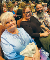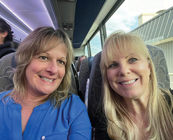 Renee Mercadante and Pam Dietrich on the bus to the show.